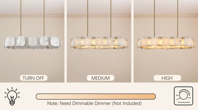 Crafted from natural alabaster stone, this fixture delivers a warm, softly diffused glow with fully dimmable lighting. Please note that a compatible wall dimmer is required and should be prepared by the customer. The inherent translucence and organic veining of alabaster create an elegant atmosphere that adjusts effortlessly to your preferred brightness.