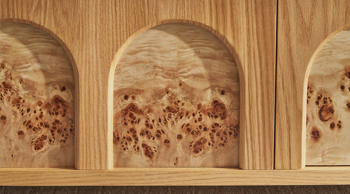 Die Aurora-Serie ist bekannt für ihren seltenen natürlichen Charme und präsentiert das Meisterwerk der Natur – reich gemasertes Wurzelholz. Das sorgfältig gefertigte vertikale Eckdesign verleiht eine raffinierte Vintage-Ästhetik. Als sorgfältig gestaltetes zentrales Element für Innenräume fügt es sich nahtlos in moderne Mid-Century-Stile ein.