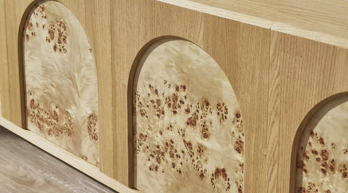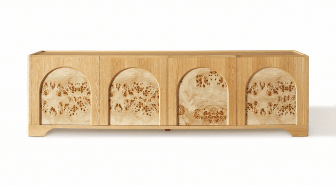 Die Aurora-Serie ist bekannt für ihren seltenen natürlichen Charme und präsentiert das Meisterwerk der Natur – reich gemasertes Wurzelholz. Das sorgfältig gefertigte vertikale Eckdesign verleiht eine raffinierte Vintage-Ästhetik. Als sorgfältig gestaltetes zentrales Element für Innenräume fügt es sich nahtlos in moderne Mid-Century-Stile ein.