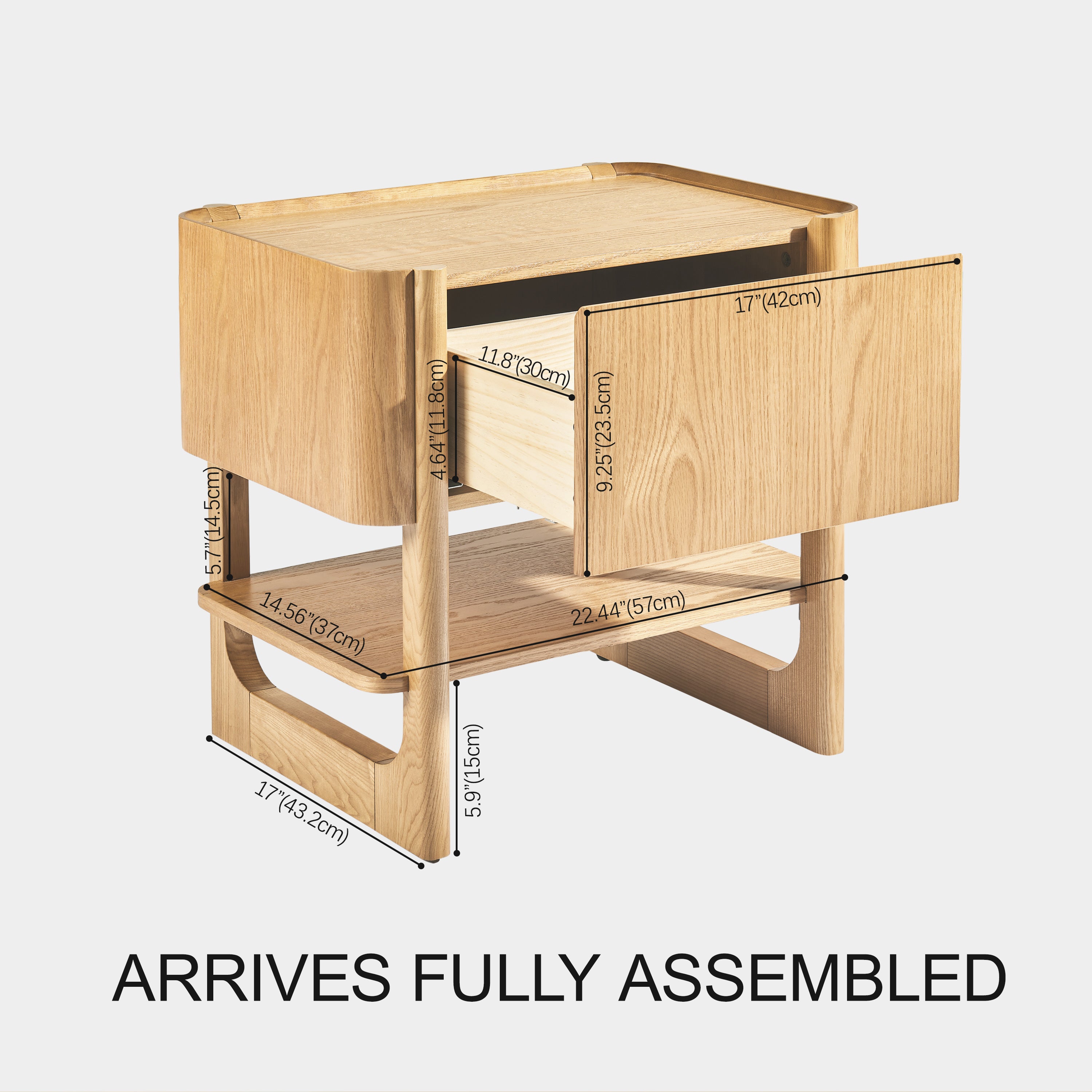 - Drawer features pine board for durability