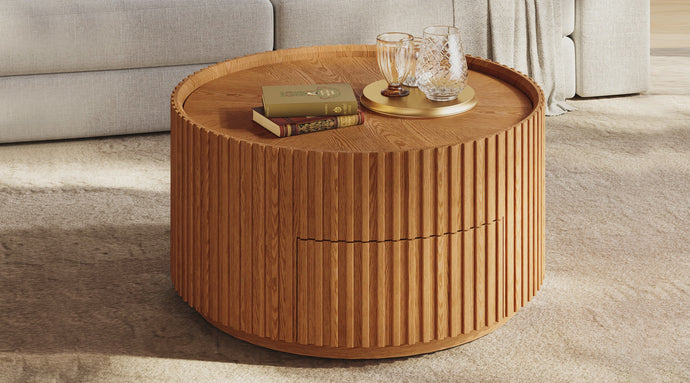 The oak brown veneer and rounded design perfectly align with mid-century aesthetics, and the product itself is five-star quality. However, due to the slow delivery time, I had to go without a coffee table for a considerable period. I will definitely give a full rating next time if stock is confirmed before purchase.