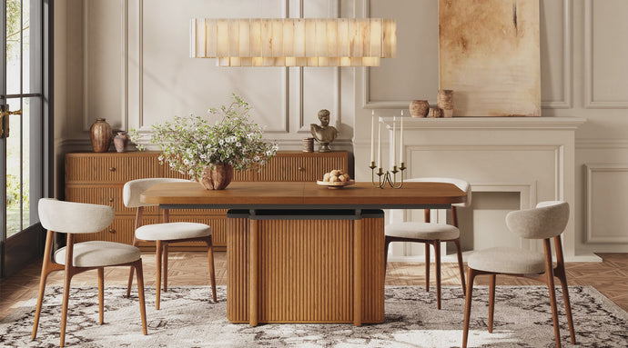 The Casey Dining Table masterfully combines functional versatility with refined craftsmanship, designed to adapt seamlessly to intimate gatherings. The tabletop is crafted from 21mm engineered wood with an 18mm thickened edge, surfaced in warm red oak veneer for natural elegance and durability. Blending organic warmth with industrial strength, the Casey Dining Table becomes a versatile centerpiece that elevates any dining space with timeless appeal.