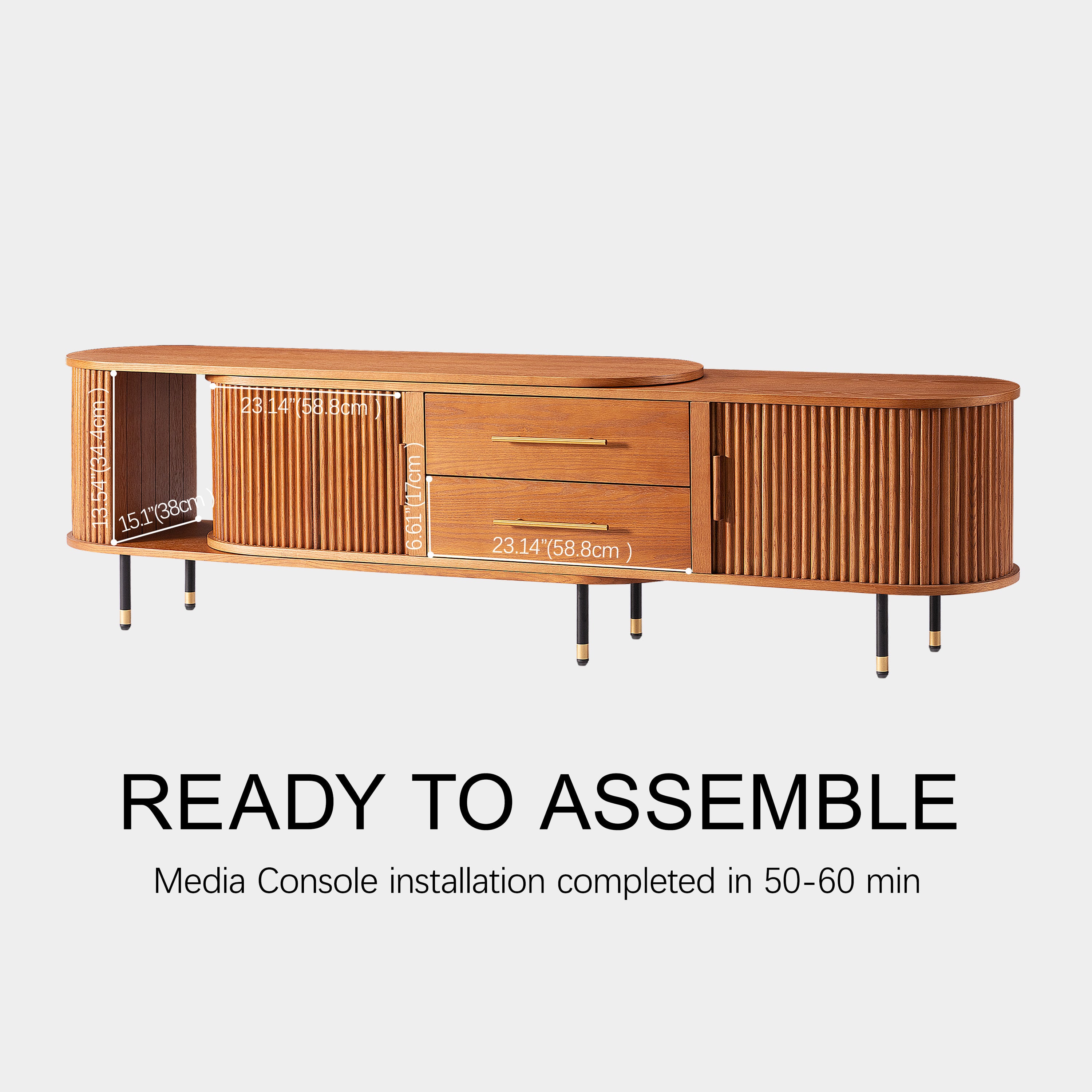 Dieses Design greift eine mittelalterliche Ästhetik auf und zeichnet sich durch Schiebetüren und bewegliche Komponenten aus, die klassische Eleganz nahtlos mit praktischer Funktionalität verbinden. Die satten Holztöne und strukturierten Oberflächen erinnern an die Ästhetik mittelalterlichen Designs und bieten eine praktische Aufbewahrungs- und Erweiterungslösung, die modernen Innenräumen einen Hauch von Retro-Eleganz verleiht.
