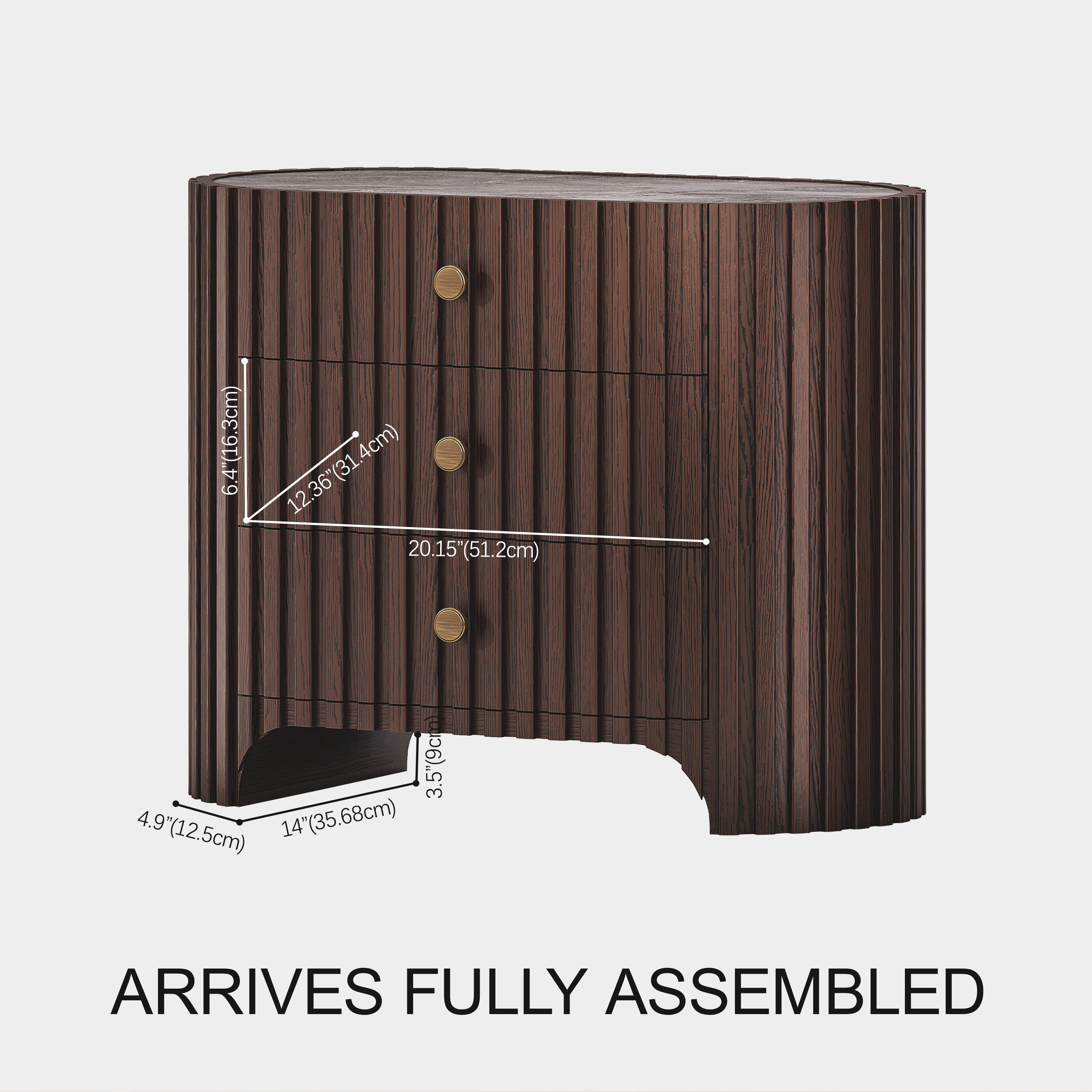 - Crafted of solid Oak fluting, Oak veneers, and Plywood.