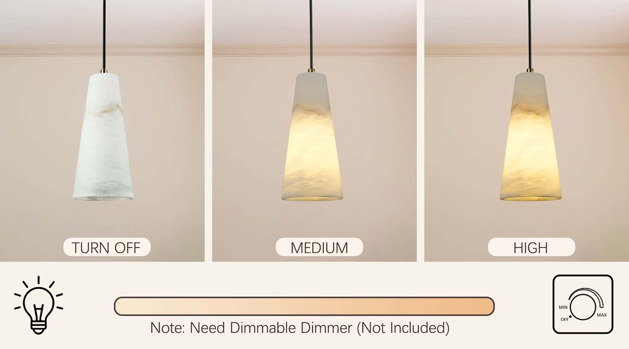 Die konische Pendelleuchte aus natürlichem spanischen Alabaster besticht durch ihren eleganten Marmorschirm, der ein warmes, stimmungsvolles Licht verbreitet. Ihre raffinierte konische Silhouette und die glatte, durchscheinende Textur verleihen Küchen, Essbereichen oder Wohnzimmern organische Eleganz. Jedes Stück ist von der Natur einzigartig gemustert, sodass keine zwei Pendelleuchten gleich sind.