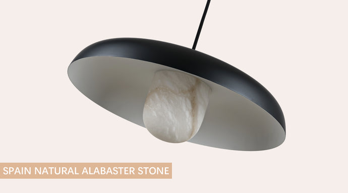 Die 16" Alabaster Industrial Pendelleuchte kombiniert die natürliche Eleganz von Alabaster mit Elementen des Industriedesigns. Ihr glockenförmiger Schirm aus durchscheinendem Alabaster strahlt ein warmes, einladendes Licht aus und passt daher ideal zu verschiedenen Einrichtungsstilen. Die verstellbare Hängehöhe und die Kompatibilität mit schrägen Decken bieten vielseitige Installationsmöglichkeiten – perfekt für Küchen, Essbereiche oder Eingangsbereiche.