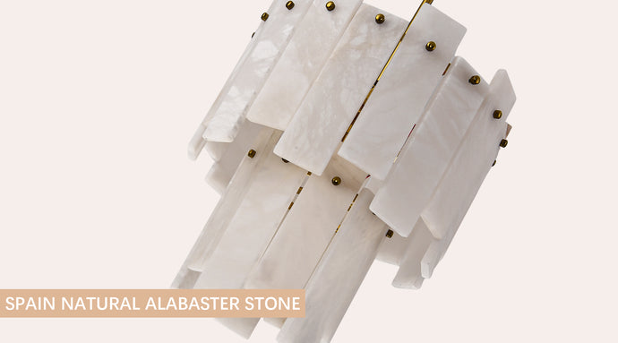 Aus natürlichem Alabaster gefertigt, präsentiert sich die Nivislight Alabaster Pendelleuchte mit sanft gestuften Ebenen, die ein warmes, atmosphärisches Licht erzeugen. Die organischen Steinscheiben werden von Hand auf einem fein goldveredelten Rahmen montiert – perfekt, um Esszimmer, Foyers, Treppenaufgänge oder Wohnbereiche mit moderner Eleganz zu bereichern. Jede Leuchte ist dank der charakteristischen Maserung des Alabasters ein Unikat.