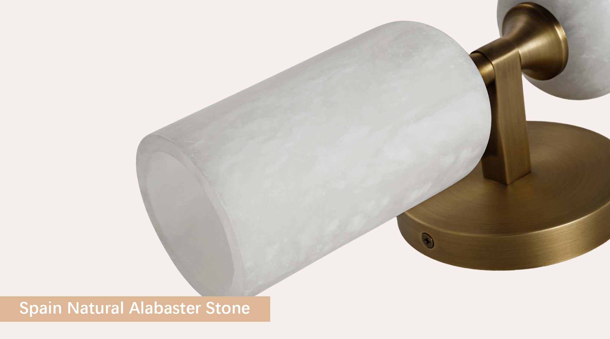 The Axis Alabaster Wall Sconce 13.9" features twin hand-carved Spanish alabaster shades, offering balanced, ambient lighting with timeless style. Each piece is naturally unique, adding a touch of elegance to any space.