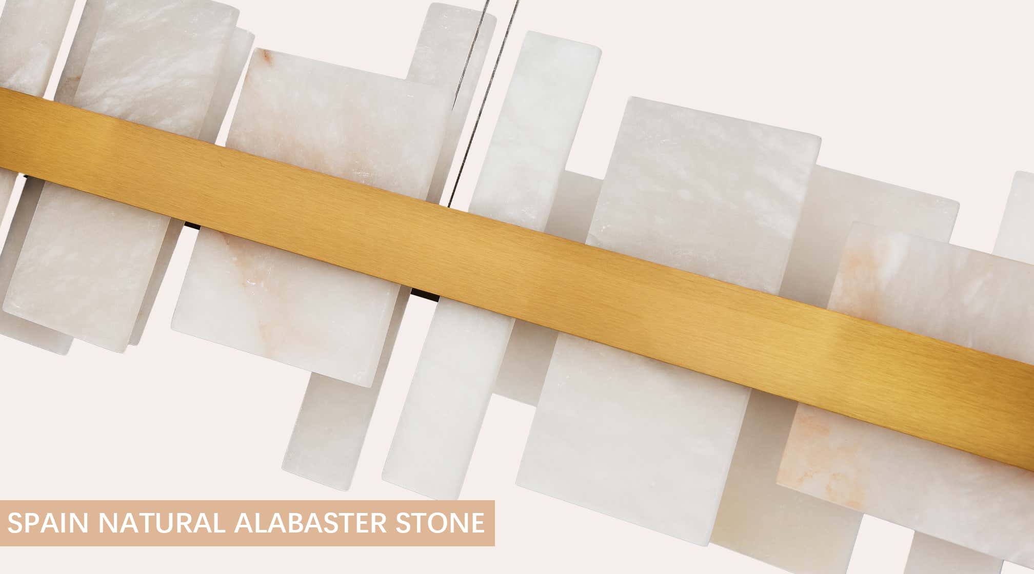 The Nocturne Alabaster Series features a sculptural halo of hand-cut Spanish alabaster panels, gently diffusing a soft, ambient glow. Its minimalist profile and warm luminosity make it ideal for dining rooms, living areas, or entryways, while the naturally veined stone ensures every fixture is uniquely beautiful. Designed for adjustable suspension and sloped-ceiling compatibility, it suits both modern and classic interiors.