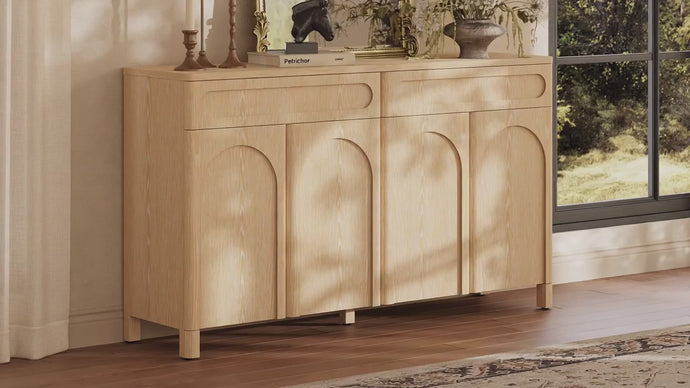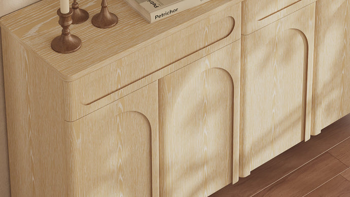 More than a storage piece, the Amari 63" Sideboard is a masterclass in architectural elegance. Its expansive silhouette, featuring signature arched carvings and striking mountain-grain red oak veneers, turns your dining room into a curated gallery. Designed for large families, it seamlessly bridges the gap between artisanal craftsmanship and high-capacity modern utility.
