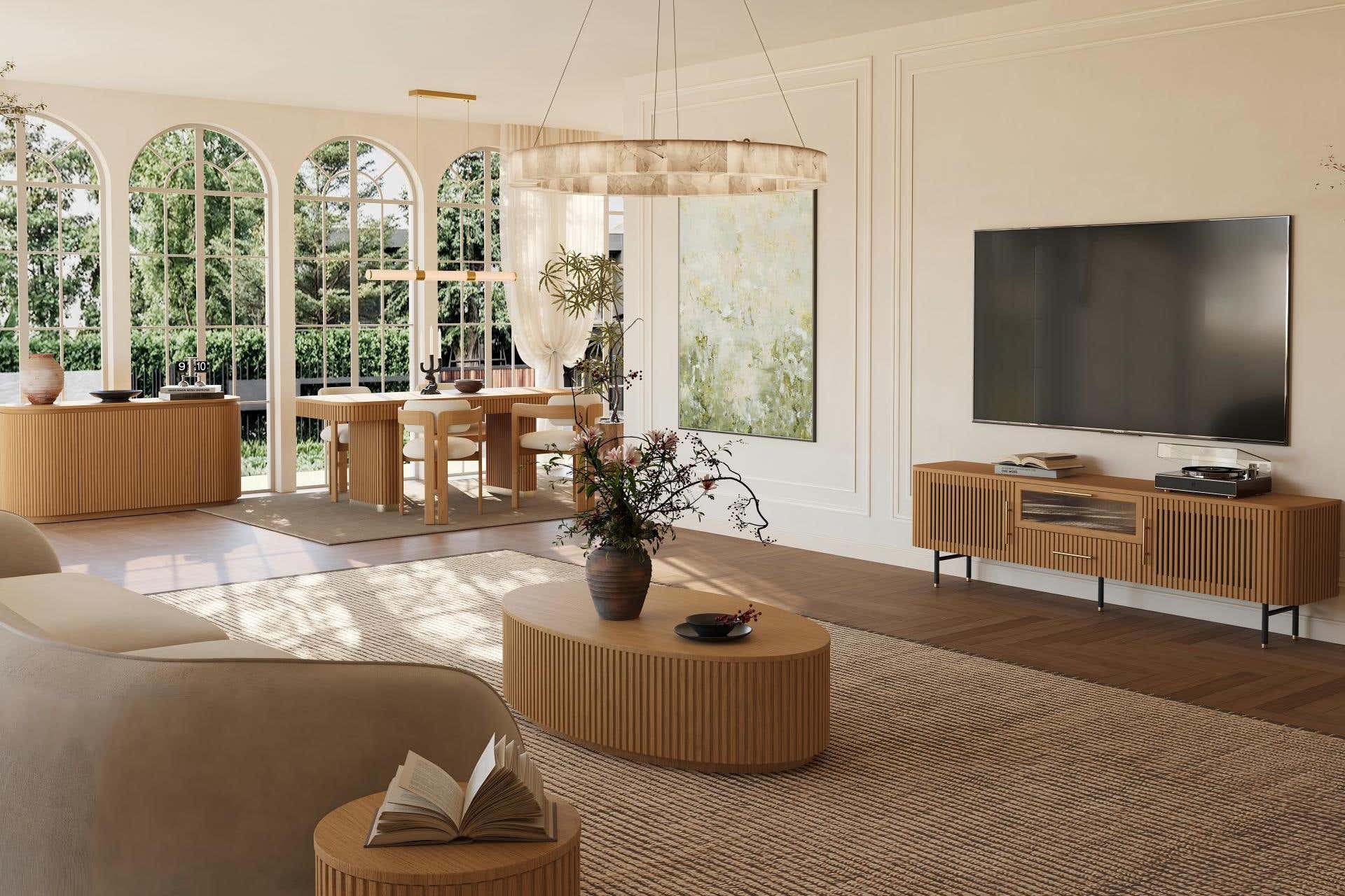 Of course. We focus on the overall aesthetic appeal of the space, coordinating everything from chandeliers and table lamps to sofas and dining tables based on your floor plan, style, and functional needs.