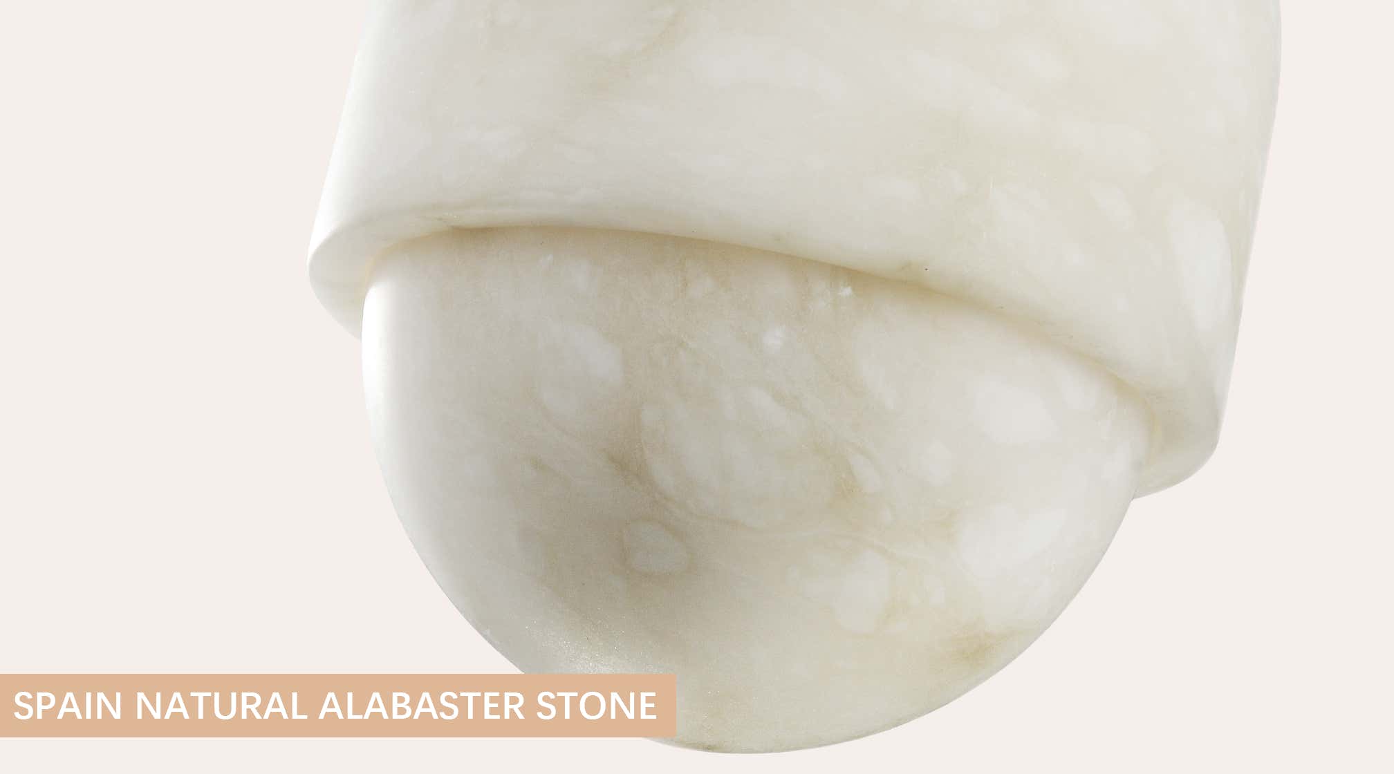 Die moderne Pendelleuchte Alabaster Marble ist eine skulpturale Leuchte, die natürlichen Alabaster mit minimalistischem Design verbindet. Der sanfte, warme Schein des Alabasterschirms wertet verschiedene Innenräume auf und macht sie ideal für Küchen, Essbereiche oder Wohnzimmer.