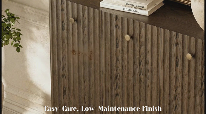 Finally settled on this one after a lot of searching, and it’s worth every penny! The dark oak finish is stunning—real wood texture with a beautiful grain, not that cheap laminate look. The fluted doors and brass knobs give it such a high-end, mid-century vibe. I especially love the bottom open shelf for daily slippers; it's so practical. It’s a solid, heavy piece of furniture, so you might need a second pair of hands for assembly. Overall, 10/10 for style and quality!