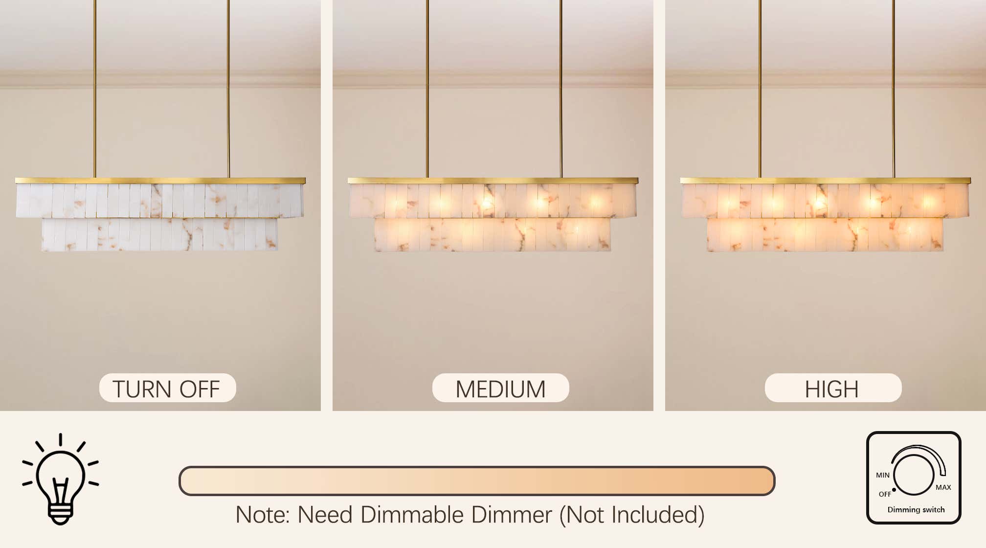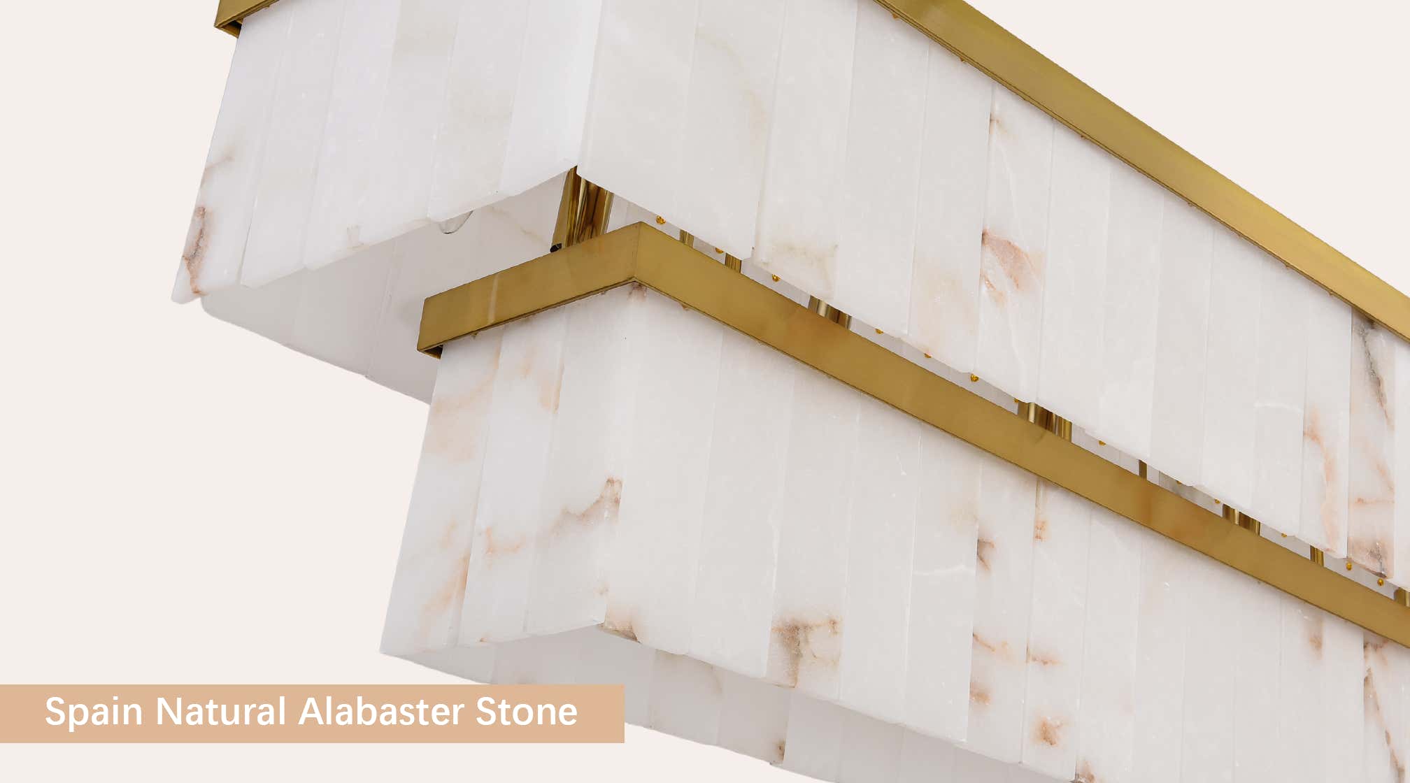 Solmare Alabaster Rechteckiger Kronleuchter 55"B